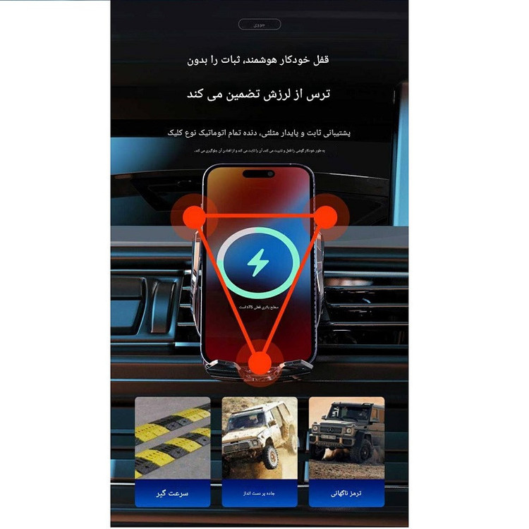 هلدر دریچه کولر هوشمند با نورپردازی و قابلیت چرخش ۳۶۰ درجه دارد. این هلدر مخصوص دریچه کولر، انتخابی ایدهآل برای نگهداشتن ایمن و شیک گوشی موبایل در خودرو است. طراحی بسیار نازک بدنه در کنار نورپردازی زیبا، جلوهای مدرن و چشمنواز به فضای داخلی خودرو میبخشد، بهویژه در شب. این هلدر با بهرهمندی از سنسور هوشمند، بهصورت اتوماتیک باز شده و گوشی شما را بهراحتی در جای خود قرار میدهد. قابلیت چرخش ۳۶۰ درجه، امکان تنظیم زاویه دید دلخواه را فراهم میکند. همچنین گیرههای مقاوم طراحیشده برای این محصول، باعث استحکام بیشتر و جلوگیری از افتادن گوشی حتی در مسیرهای ناهموار میشود. با توان ۱۵ وات، این هلدر نهتنها ظاهر زیبا بلکه عملکردی قدرتمند را نیز ارائه میدهد. مناسب برای انواع خودروهایی است که دریچه کولر خطی دارند.