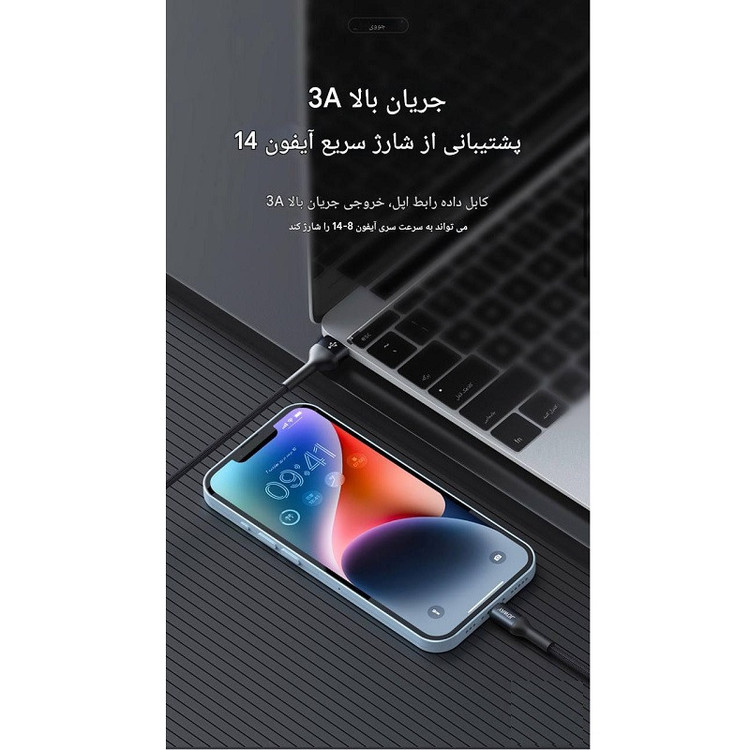 کابل شارژ یک متری با قابلیت فست شارژ و انتقال دیتا، مناسب برای دستگاههای آیفون با جریان خروجی ۳ آمپر. این کابل با قطر ۳.۵ میلیمتر از سیم مسی با لایهای از آلومینیوم و روکشی مقاوم از جنس کناف ساخته شده و مقاومت بالایی در برابر خمشدگی و پارگی دارد. در ابتدا و انتهای کابل، محافظهای ۲ سانتیمتری تعبیه شده تا از آسیب در نقاط حساس جلوگیری شود. کابل آیفون دارای ۱۱۸ رشته سیم برای انتقال بهتر جریان است. این محصول تحت تستهای مختلف از جمله ۵۰۰۰ بار اتصال و جداسازی، ۳۰۰۰ بار نوسان و ۲۴ ساعت تست مقاومت در برابر نمک قرار گرفته تا دوام و کیفیت آن تضمین شود.
