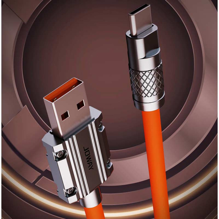 کابل مدل TC120 از برند معتبر جووی با ضخامت فوق العاده و سری های فلزی کابلی بسیار مقاوم و کارآمد است که خیال شما را از بابت خرید کابل شارژ راحت می کند. این کابل توانایی عبور 6A جریان را دارد و با پشتیبانی از فست شارژ و انتقال دیتا شما را از کابل های دیگر بی نیاز می کند.