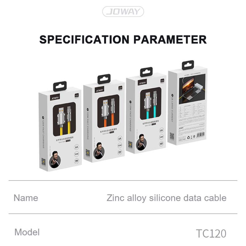 کابل مدل TC120 از برند معتبر جووی با ضخامت فوق العاده و سری های فلزی کابلی بسیار مقاوم و کارآمد است که خیال شما را از بابت خرید کابل شارژ راحت می کند. این کابل توانایی عبور 6A جریان را دارد و با پشتیبانی از فست شارژ و انتقال دیتا شما را از کابل های دیگر بی نیاز می کند.
