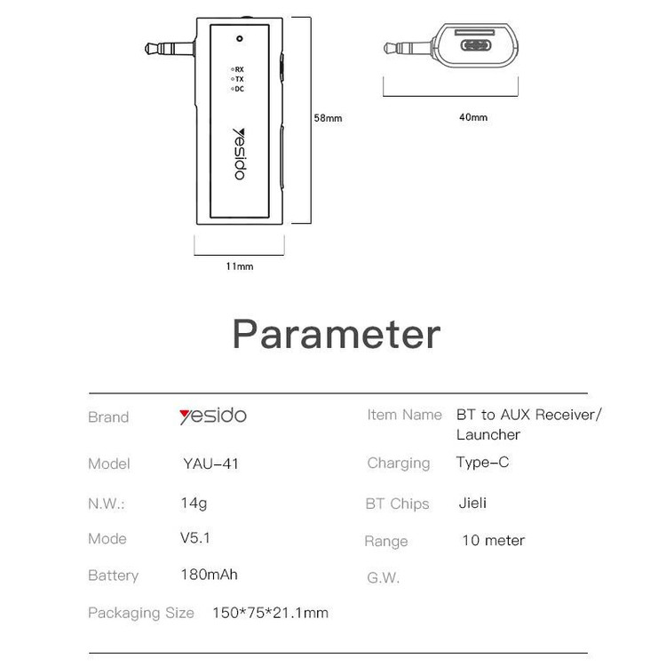 Yesido YAU 41 گیرنده فرستنده با نسخه بلوتوث 5.0 صوتی بلوتوث 2 در 1 استریو 3.5 میلی متری آداپتور صوتی بی سیم Aux برای تلویزیون کامپیوتر بلندگو سیستم صدای خودرو و سیستم صدای خانه با عملکرد خوب و مواد با کیفیت بالا، ممکن است برای مدت طولانی کار کند. محافظت کامل از گرد و غبار، ضربه، خراش و ضربه و سایر آسیب های روزانه . پشتیبانی از اتصال بی سیم تلفن همراه، وضوح بالا، پشتیبانی از اتصال AUX-in بلندگو. قابليت مكالمه و قدرت بلوتوث تا 10 متر مناسب برای اتومبیل ها، تلفن های همراه و بلندگوهای عمومی، بلندگوهای عمومی را به بلندگوهای بلوتوث تبدیل می کند. قابليت اتصال با سيم و بدون سيم تا 10 ساعت