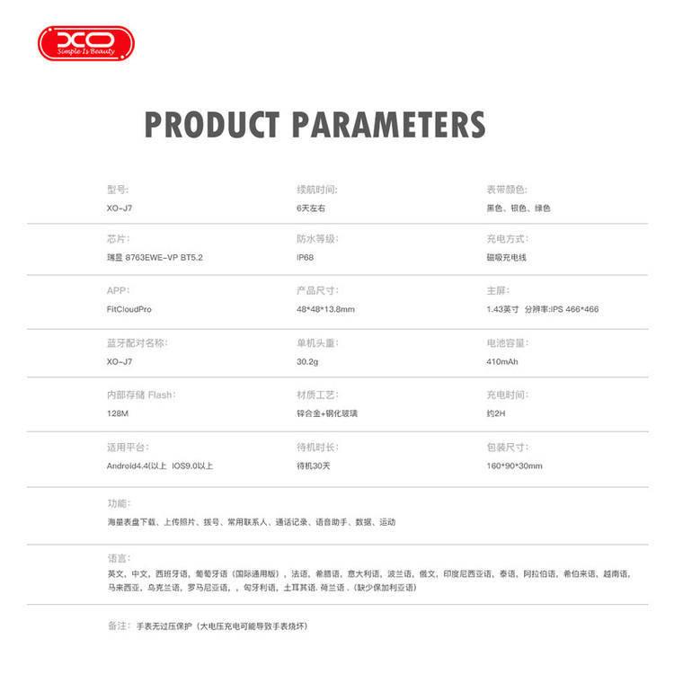 در دنیای امروز، استفاده از فناوریهای هوشمند به یک نیاز اساسی تبدیل شده است. ساعت هوشمند ایکس او مدل XO-J7 با طراحی زیبا و ویژگیهای متنوع، انتخابی مناسب برای افرادی است که به دنبال ترکیبی از عملکرد بالا و ظاهر جذاب هستند. در این مقاله به بررسی جزئیات این محصول میپردازیم و ویژگیهای منحصربهفرد آن را معرفی میکنیم.ساعت هوشمند XO-J7 با ابعاد 484813.8 میلیمتر و وزن تنها 30.2 گرم، یک گزینه بسیار سبک و راحت برای استفاده روزانه است. بدنه این ساعت از آلیاژ روی و شیشه حرارت دیده ساخته شده که علاوه بر زیبایی، مقاومت بالایی در برابر ضربه و خط و خش دارد. بند این ساعت در سه رنگ مشکی، نقرهای و سبز موجود است که هرکدام میتوانند به سلیقهی خاص شما پاسخ دهند.یکی از مهمترین ویژگیهای ساعت XO-J7، صفحه نمایش 1.43 اینچی آن با رزولوشن 466*466 پیکسل است. این صفحه نمایش IPS با کیفیت بالا، تصاویری روشن و واضح را به نمایش میگذارد و تجربهای بینظیر از مشاهده اطلاعات مختلف را فراهم میکند. همچنین، امکان دانلود صفحههای متنوع برای صفحه نمایش، به شما این امکان را میدهد که هر زمان که بخواهید، ظاهر ساعت خود را تغییر دهید.ساعت XO-J7 از میکروچیپ Renesas 8763EWE-VP با بلوتوث نسخه 5.2 بهره میبرد که اتصال پایدار و سریعی را با دستگاههای دیگر فراهم میکند. این ساعت با برنامه FitCloudPro سازگار است و میتوانید به راحتی اطلاعات مربوط به فعالیتهای ورزشی، سلامتی و… را در این اپلیکیشن مشاهده و مدیریت کنید.یکی دیگر از نقاط قوت ساعت هوشمند XO-J7، باتری با ظرفیت 410 میلیآمپر ساعت آن است. این باتری با یک بار شارژ حدود 6 روز دوام میآورد و در حالت استندبای میتواند تا 30 روز فعال بماند. زمان مورد نیاز برای شارژ کامل ساعت حدود 2 ساعت است که با استفاده از کابل شارژ مغناطیسی موجود در بستهبندی به راحتی انجام میشود.ساعت XO-J7 دارای استاندارد مقاومت در برابر آب IP68 است که به شما این امکان را میدهد که بدون نگرانی از آن در محیطهای مرطوب و حتی هنگام شنا استفاده کنید. این ویژگی باعث میشود که ساعت در برابر گرد و غبار و آب مقاوم باشد و به طور کلی طول عمر بیشتری داشته باشد.ساعت هوشمند XO-J7 با سیستمعاملهای اندروید 4.4 و بالاتر و iOS 9.0 و بالاتر سازگار است.