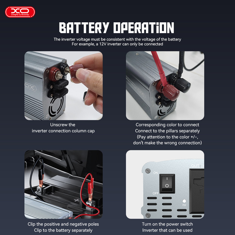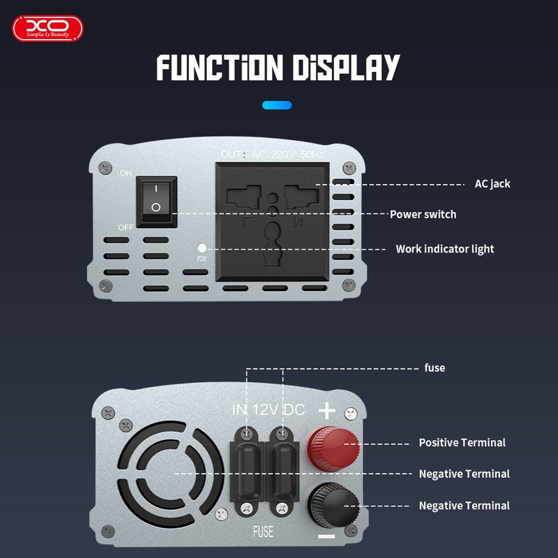 اینورتر 500W XO-CZ021 یک ترانسفورماتور ولتاژ خودرو است که ولتاژ 12 ولت DC باتری خودرو را به 220 ولت AC تبدیل می کند. این اینورتر برای استفاده از تجهیزات الکتریکی در طول سفر، فعالیت های خارج از منزل یا به عنوان منبع تغذیه پشتیبان در غیاب شبکه برق ایده آل است. ویژگی ها: استفاده از تجهیزات الکتریکی را در صورت عدم وجود شبکه الکتریکی فعال می کند. ایمن برای استفاده با چندین محافظ برای اضافه بار، گرما و کوتاه. جمع و جور و حمل و نقل آسان، با نصب ساده در خودرو. حفاظت از اتصال معکوس و حفاظت از ولتاژ بالا و پایین برای ایمنی بیشتر.