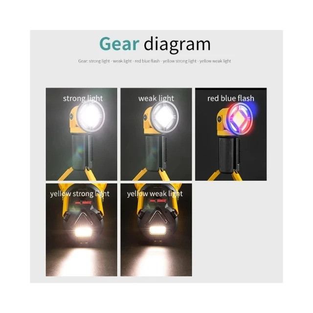 دارای طراحی ضدآب و ارگونومیک استفاده هم به عنوان چراغقوه و هم به عنوان پاوربانکنور بسیار شدید و قوی دارای نور سفید مرکزی و دو نور جانبی آبی و قرمز
