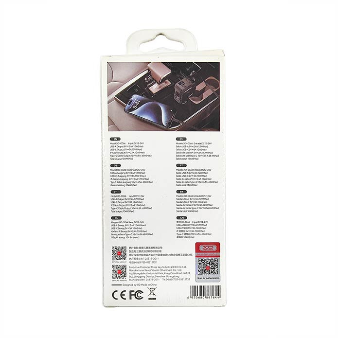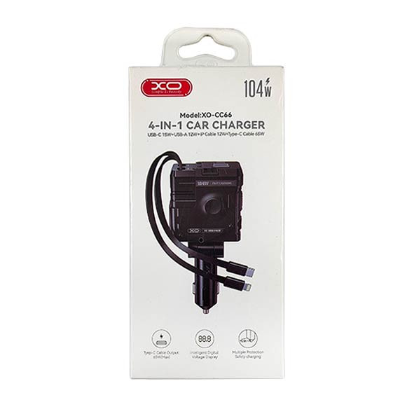 شارژر فندکی فست شارژ ماشین XO ایکس او 104 وات Type-C، Lightning، USB-A  مدل CC66