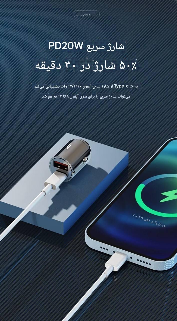 خروجی تایپ سی: 5V/3A , 9V/2.2A , 12V/1.67A
