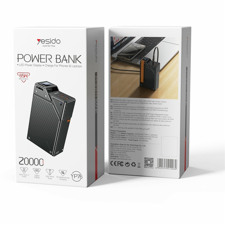 Type-C1/Type-C2 output: 5V-3A /9V-3A /12V-3A/ 15V-3A /20V-3.25A